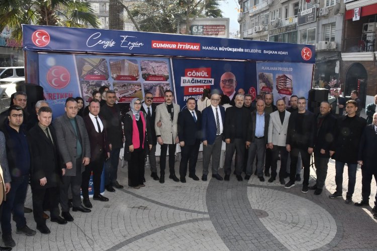 MANİSA (İGFA) - Manisa Büyükşehir Belediye Başkanı Cengiz Ergün, İzmir Caddesi üzerinde yer alan Tarzan Meydanı’nda kurulan seçim standını ziyaret etti. Başkan Ergün’e ailesinin de eşlik ettiği programda, MHP Manisa İl Başkanı Cüneyt Tosuner, MHP MYK Üyesi Mehmet Ödevli, Manisa Ülkü Ocakları İl Başkanı Emirhan Sallıtepe, SPİLAŞ Genel Müdürü Engin Anlı, Genel Sekreter Yardımcıları Ali Öztozlu ile Metin Memiş ve meclis üyeleri de yer aldı.