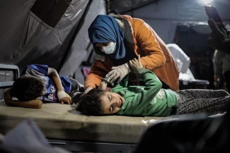 “NETANYAHU KENDİ KOLTUĞUNU KORUMAK İÇİN FİLİSTİNLİLERİ KATLEDİYOR”Refah'a Filistinlilerin zorunlu olarak göç etmesi nedeniyle bölgede çok dar bir alanda anormal sayıda nüfusun bulunduğunu ifade eden Muin Naim, “Şu anda Refah'ta 1.4 milyon insan bulunuyor. Tabiri caizse bir iğne atsanız birisinin başına denk gelebilir. Refah, Filistinlilerin sığınabileceği son noktadır. Netanyahu kendi siyasi geleceğini kurtarabilmek adına ülkesindeki siyasi ve askeri stratejistlerin Refah saldırısına karşıt görüş bildirmesine rağmen kendi koltuğunu korumak için bu saldırıyı gerçekleştirecek gibi görünüyor. Netanyahu bu tarz saldırılarla Filistin direnişini tehdit etmeye çalışıyor. Netanyahu Filistin direnişini insanları katletmekle tehdit ediyor. Eğer teslim olmazsanız çocukları, kadınları, yaşlıları öldüreceğim diyor. Böyle acımasız tehdit ve mantık dünya da hala ciddi bir tepki ile karşılaşmıyorsa bu durum uluslararası hukuk ve insan hakları örgütlerinin nerede olduğunu sorgulamamıza neden oluyor.” şeklinde konuştu.