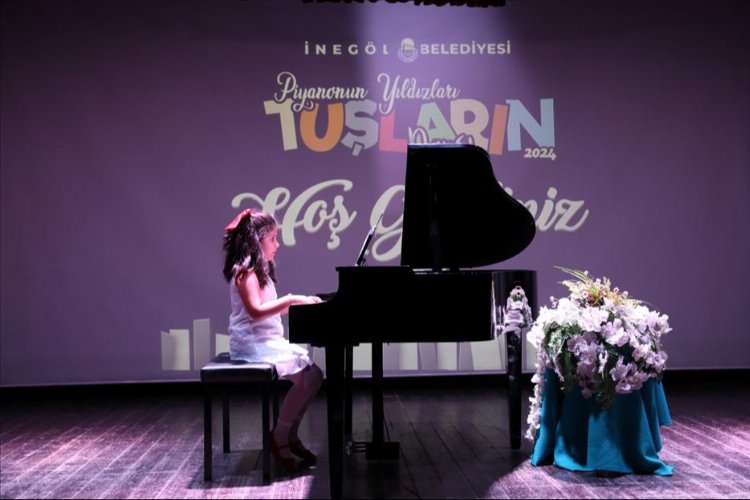 İnegöl Belediyesi, 5-15 yaş aralığında piyano eğitimi alan öğrencilerin yeteneklerini sergileyecekleri “Tuşların Dansı Piyanonun Yıldızları” etkinliği düzenledi. 67 küçük sanatçı, Kent Müzesi Konferans Salonunda sundukları resitalle büyük beğeni topladı.BURSA (İGFA) - Düzenlediği etkinlik ve organizasyonlarla şehrin kültür sanat hayatına yön veren İnegöl Belediyesi, hafta sonu çok özel bir etkinliğe imza attı. Kültür ve sanat alanında pek çok farklı kurs ve eğitimi bulunan İnegöl Belediyesi, piyano kurslarına katılan öğrencilerin yeteneklerini sergileyeceği bir etkinlik düzenledi. Sadece İnegöl Belediyesi kursları değil, şehirde farklı eğitim kurumları ve özel kurslarda piyano eğitimi alan çok fazla çocuk olması nedeniyle herkesi kapsayan bu organizasyonda, küçük sanatçılara yeteneklerini ve performanslarını serileme imkanı sunuldu. İnegöl Belediyesi ve farklı kurslarda piyano eğitimi alan çocuklara motivasyon sağlamak, onları sahneyle tanıştırmak ve onure etmek maksadıyla yapılan “Tuşların Dansı Piyanonun Yıldızları” etkinliğinde, 5-15 yaş aralığında 67 çocuk sahne aldı.67 ÇOCUK 5’ER DAKİKALIK PERFORMANS SERGİLEDİCumartesi günü İnegöl Kent Müzesi çok amaçlı salonunda yapılan programda, daha önce kayıt yaptıran 67 küçük sanatçı performanslarını sergiledi. 15.00’da başlayan etkinlik akşam 20.00’a kadar devam etti. Gruplar halinde salona gelen küçük sanatçılar, aileleri ve kendilerini izleyenlere 5’er dakikalık performans sundular. Kendi belirledikleri repertuarla yeteneklerini sergileyen çocuklar, izleyenlerden alkış aldı.