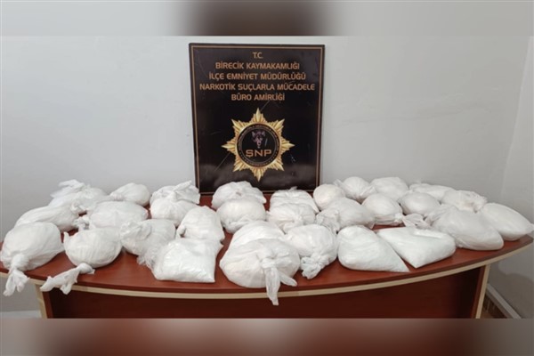 Şanlıurfa Emniyet Müdürlüğü, il genelinde uyuşturucu ticareti ve kullanımının önüne geçebilmek için çalışmalarına devam ediyor. Kurban Bayramı'nda görev başında olan polis, son 4 yılda tek operasyonla en yüksek miktarda ele geçirilen uyuşturucu maddesini yakaladı. Operasyonlarda 30 kilo 650 gram metamfetamin maddesi ile 1 kilo 400 gram skunk maddesi ele geçirildi.Şanlıurfa Valisi Hasan Şıldak, operasyona ilişkin yaptığı açıklamada narkotik polislerini tebrik ederek başarılar diledi.Uyuşturucu ticaretinin önlenmesine yönelik çalışmaların aralıksız olarak devam ettiğini belirten Vali Şıldak, şu ifadeleri kullandı:“Emniyet ve jandarma narkotik birimlerimiz, istihbarat birimlerinin de desteğini alarak il merkezinde ve ilçelerde çalışmalarını aralıksız olarak sürdürüyor. Konuyu bizzat takip ediyorum. Bu kapsamda bayram tatili içerisinde son yılların en yüksek miktara sahip metamfetamin maddesi ele geçirildi. Uyuşturucu ile mücadelemiz güçlenerek sürecektir." Hibya Haber Ajansı