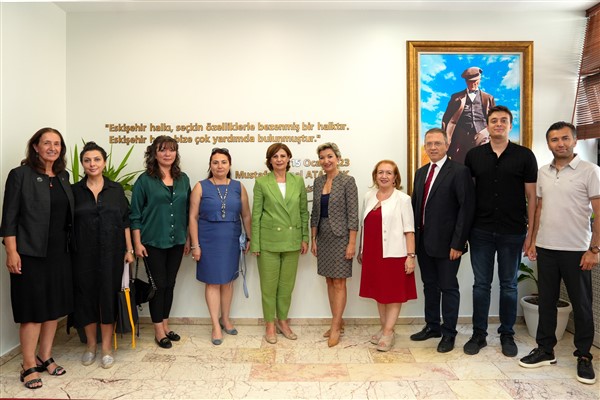 Tepebaşı Sağlıklı Kent Konseyi Başkanı Canan Adlım ve yönetimi, Büyükşehir Belediye Başkanı Ayşe Ünlüce'yi makamında ziyaret etti